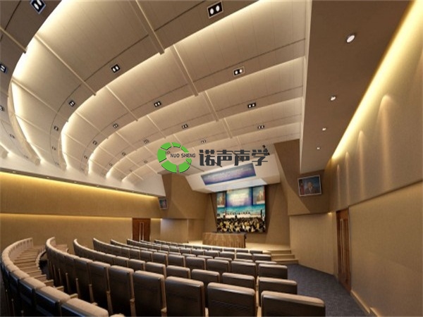 在會議廳內吸聲材料和結構具有控制混響時間和音質缺陷的雙重功能。由于會議廳采用短混響,因此,必須選用強吸聲的結構。又因強吸聲處理,因此建筑師經常采用各種容易引起聲學缺陷的體形,如圓形、橢圓形、卵形平面、穹形屋頂等。而控制音質缺陷的措施,除了配置擴散結構外,通常用強吸聲方法,因為它同時起到控制混響時間的作用。